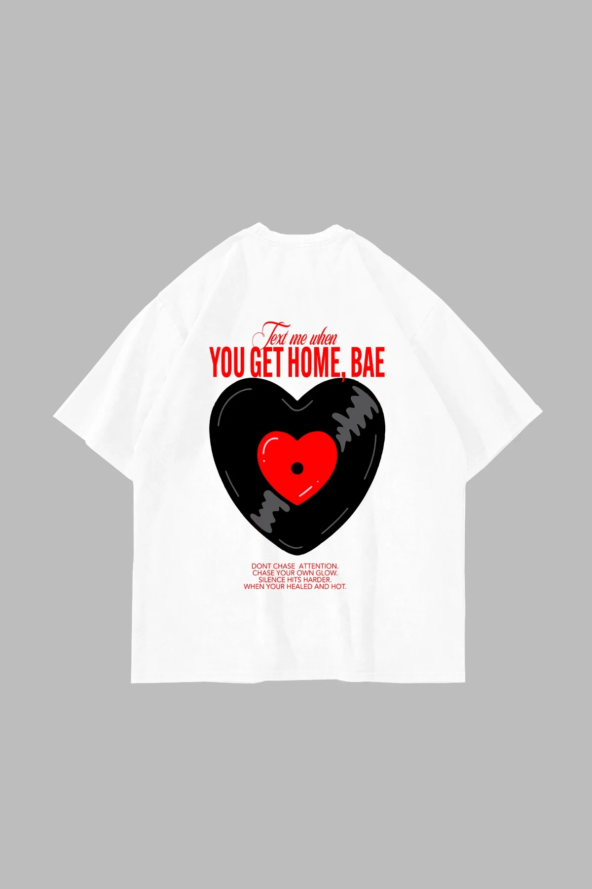 Text Me Baskılı Oversize Unisex Beyaz T-Shirt