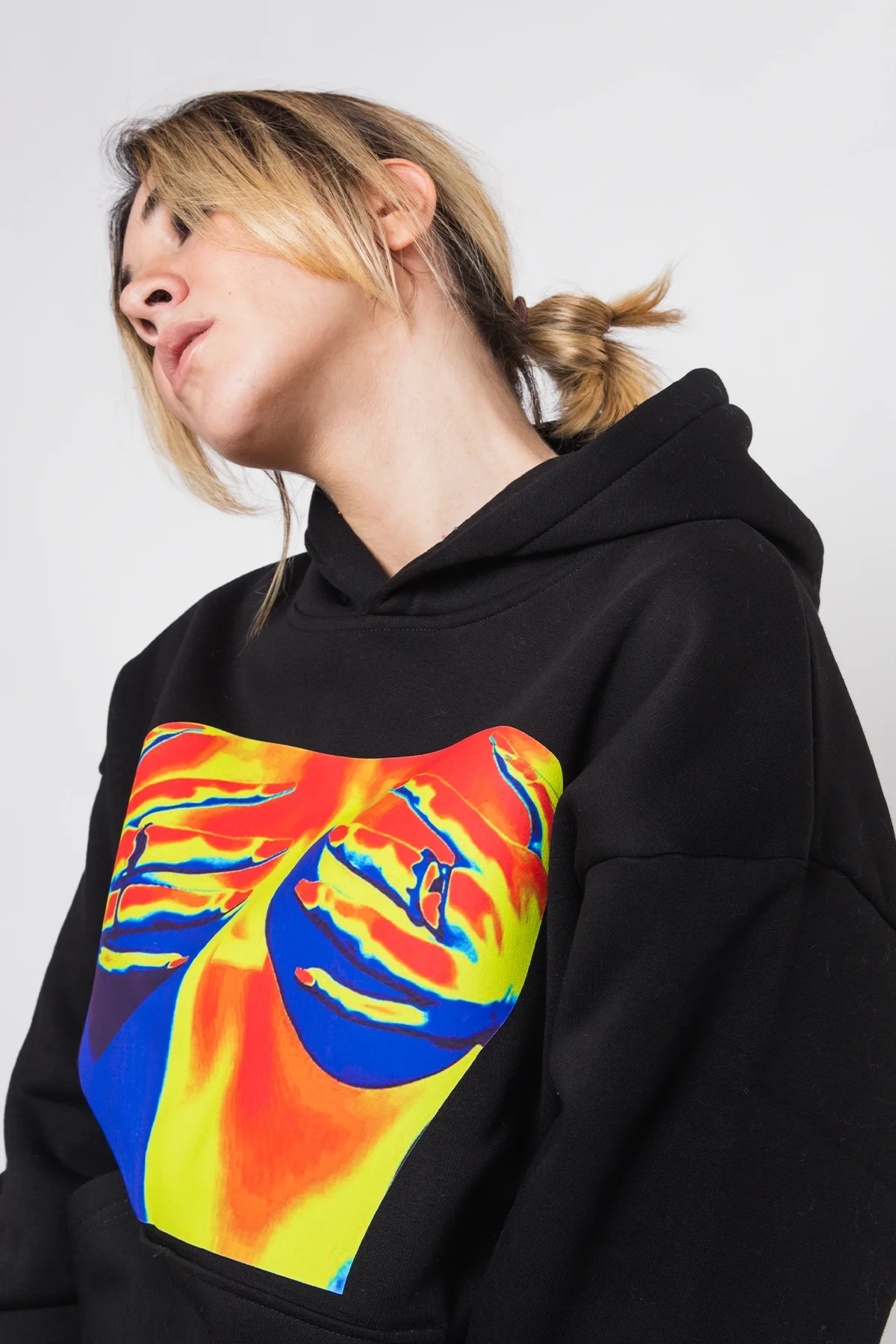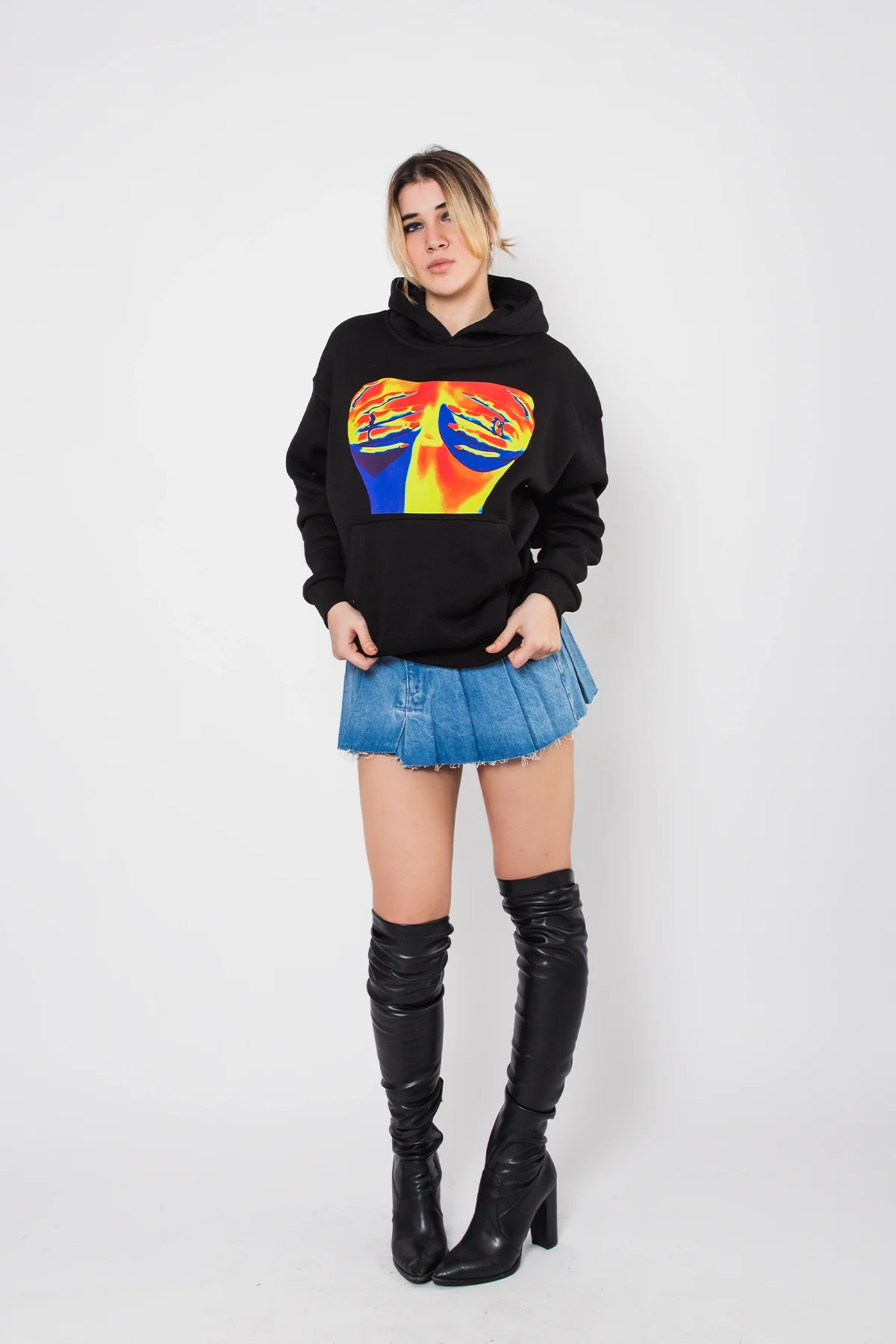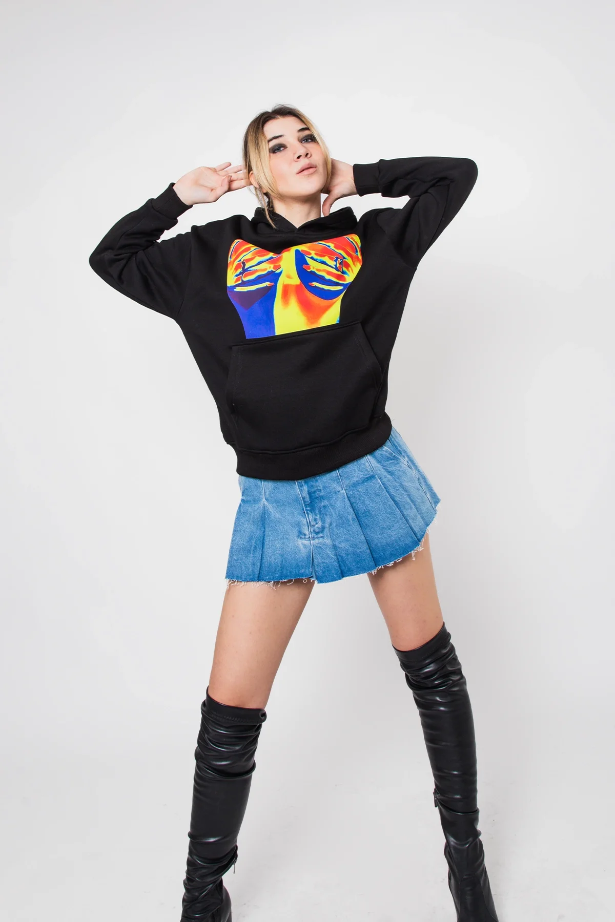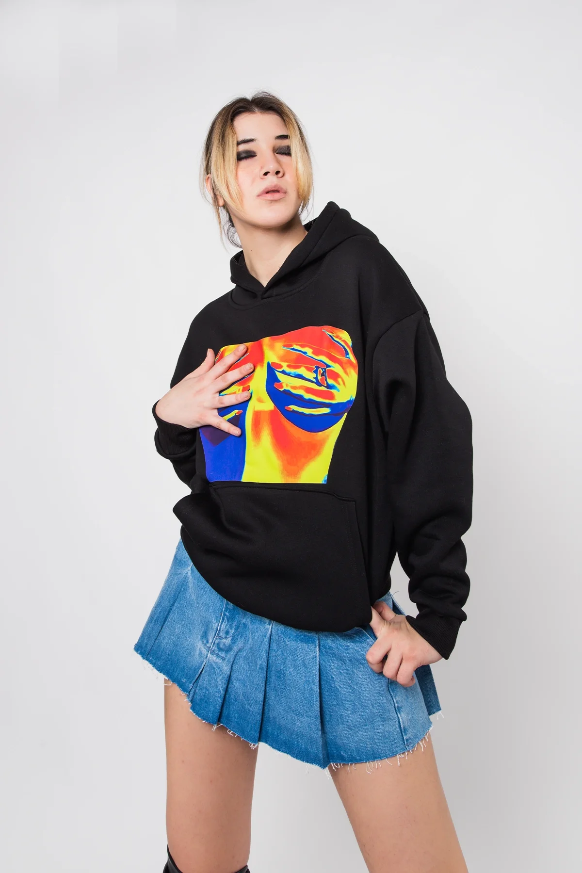 Thermal Boobs Baskılı Oversize Unisex Siyah Hoodie