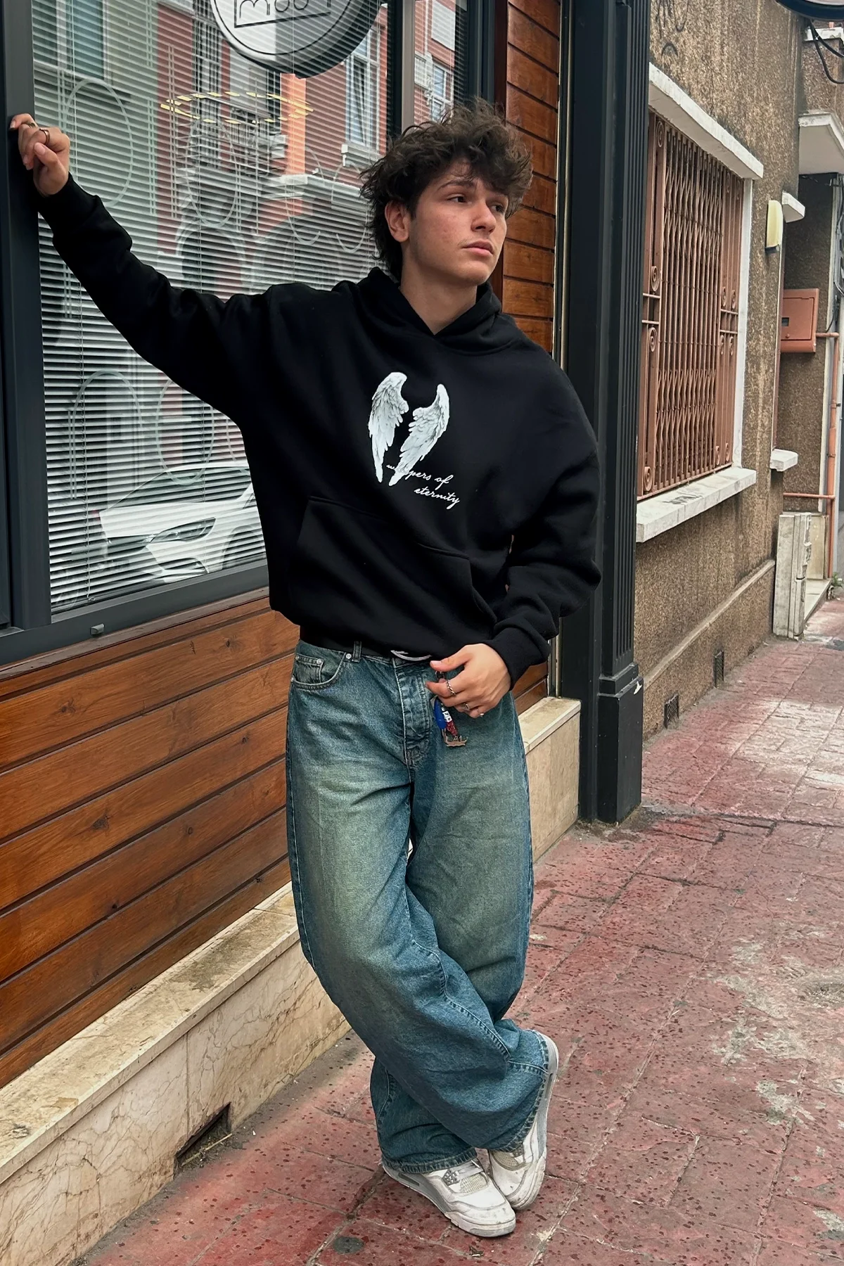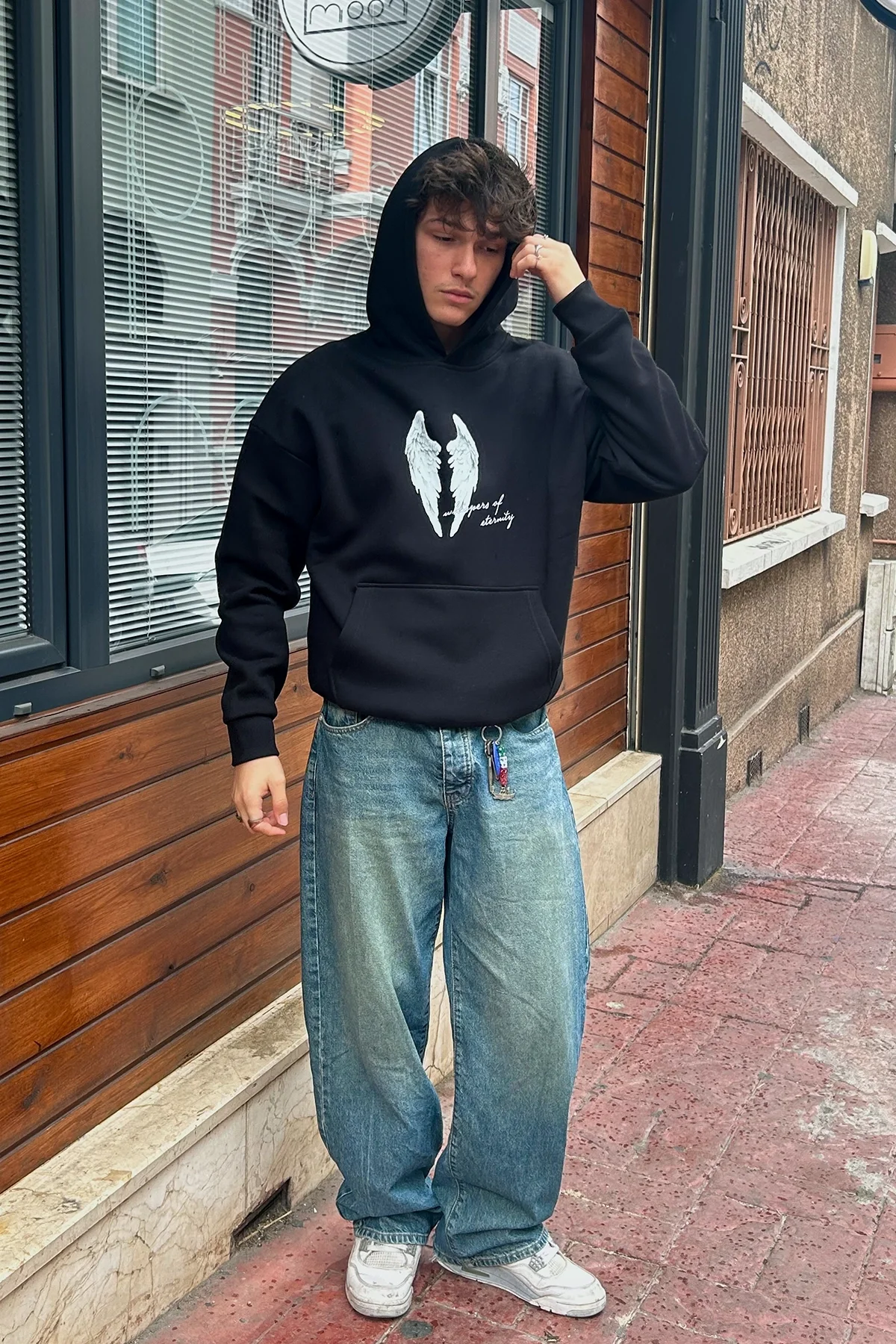 Wing Baskılı Hoodie, oversize kesimi ve zamansız Siyah rengiyle hem konforu hem tarzı bir araya getiriyor. Göğüs kısmındaki yazısı ve baskı detayıyla enerjik ve özgün bir görünüm sunar.