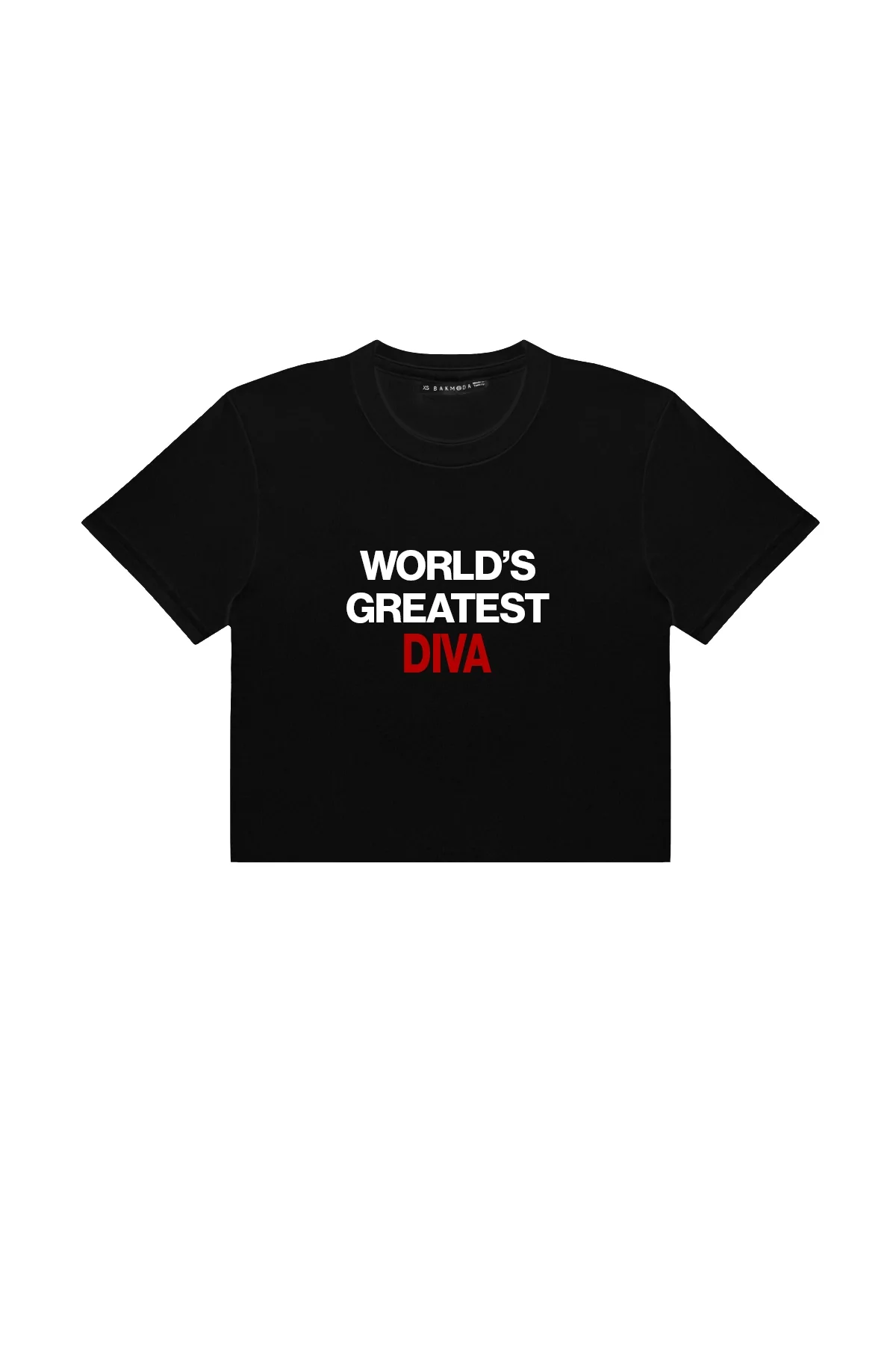 Worlds Greatest Dıva Baskılı Siyah Crop Top