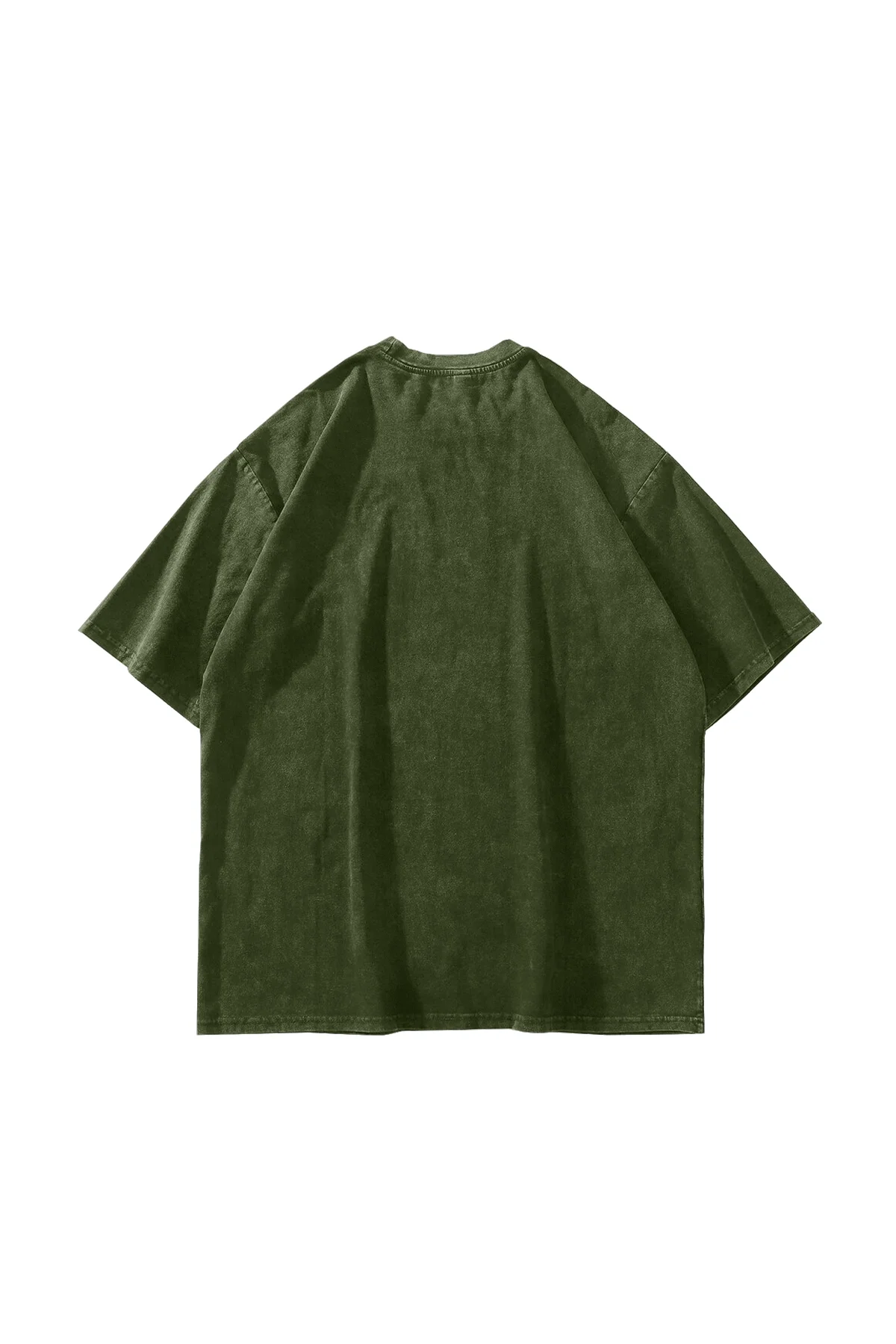 Yıkamalı Yeşil Kırmızı Dusk Baskılı Oversize Unisex Tshirt