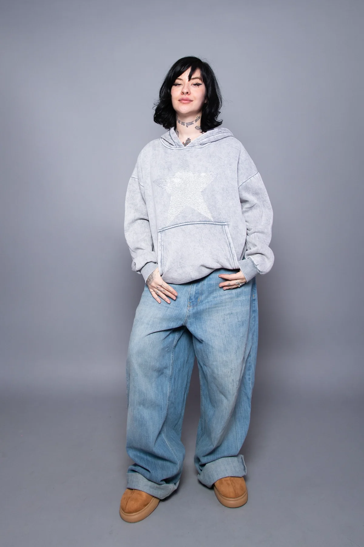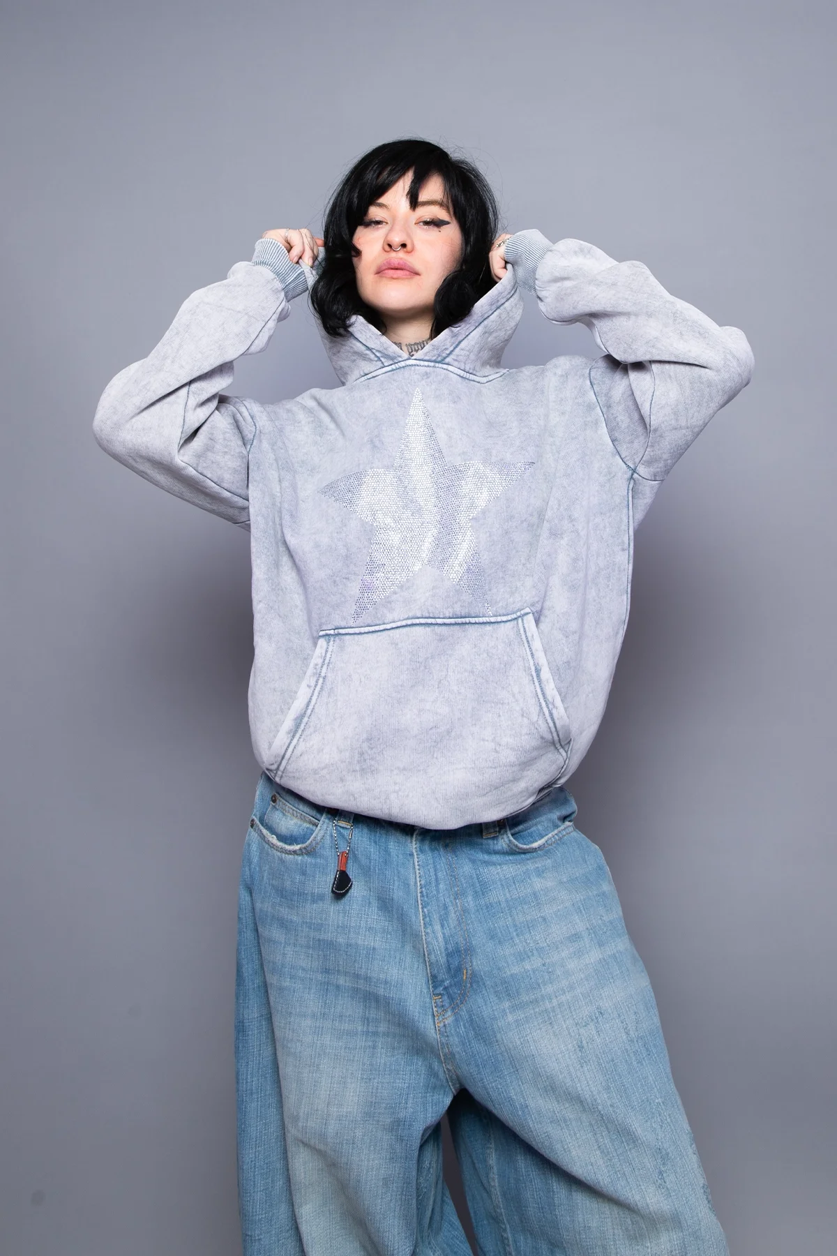 Yıldız Taş Baskılı Oversize Unisex Yıkamalı Beyaz Hoodie, sokak stilinizin yıldızı olmaya aday! Yıkamalı beyaz kumaşı ile modern bir hava yaratırken, yıldız taş baskısı tasarıma dikkat çekici bir ışıltı katar. Oversize kesimi ile rahat bir kullanım sunan bu hoodie, hem şıklığı hem de konforu bir arada sağlar.